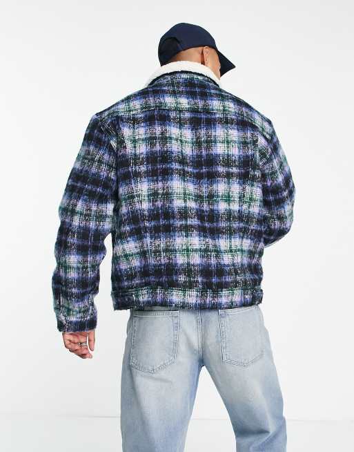 Levi S Sherpa Trucker Jacket In Green Check Asos